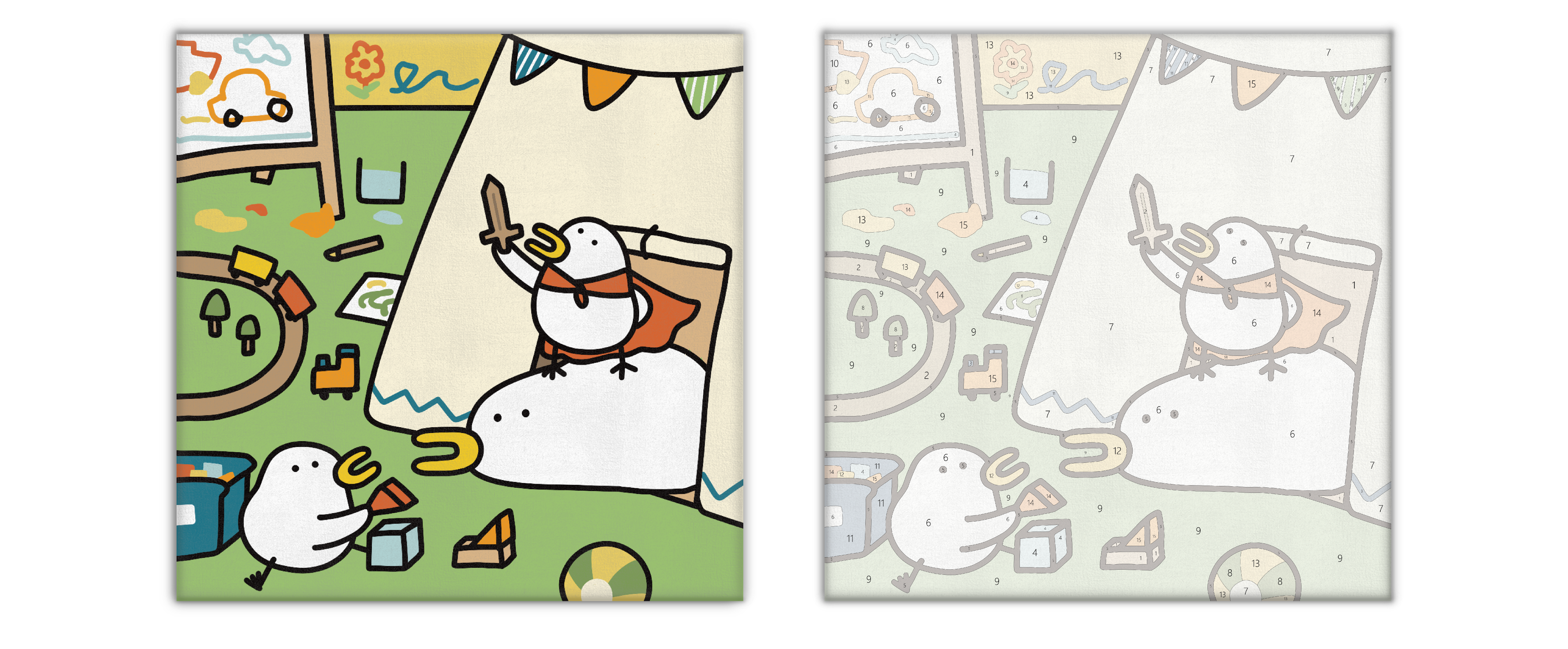 HuenGua is a duck who lives a lazy and happy life with his penguin friend, HunGui.
