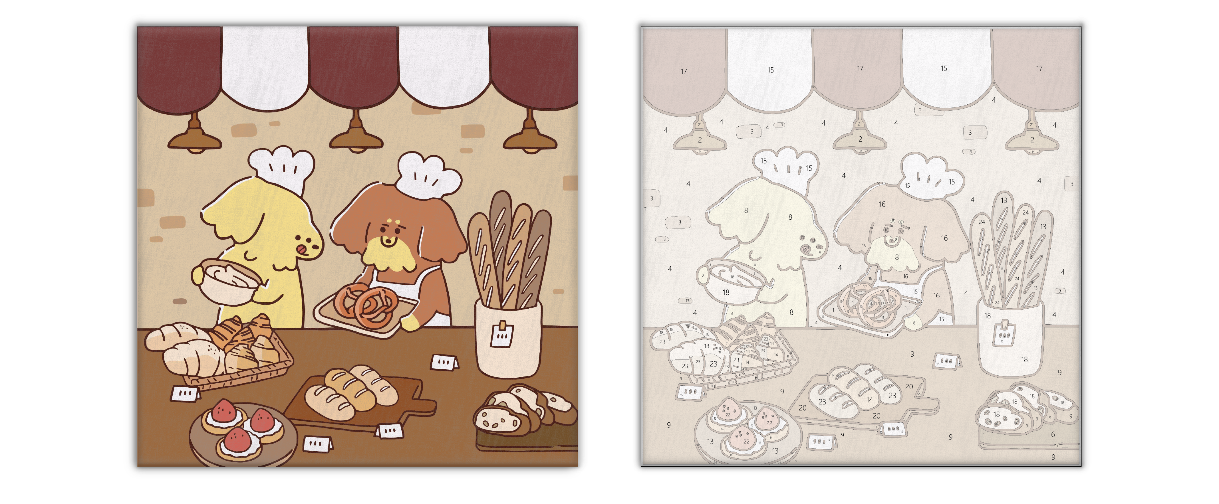 裡頭站著店長臘腸狗薯條與他的得力小助手,正踩著小板凳做麵包。 有德國結麵包,彎彎長長的像是他們的身影;有法國麵包,是小短腿的夢想身高;還有迷你小可頌,是他每天烤得最快的品項。 客人們都說這家麵包房有種特別的幸福味, 可能是因為每一條麵包,都是狗狗用短手努力揉出來的吧。