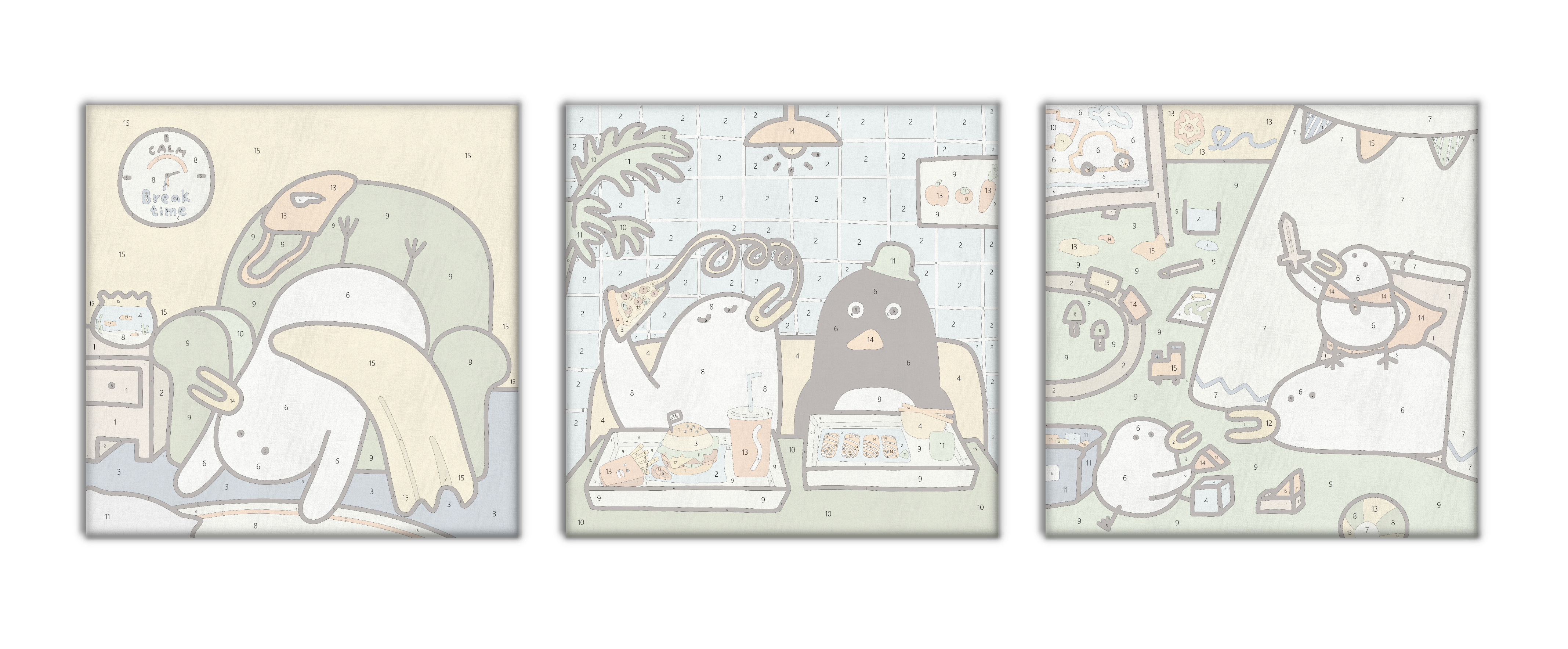 套組包含:3張獨立填色畫板